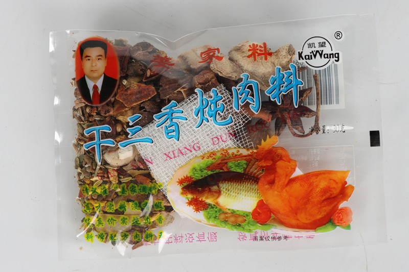 | | 名 称: | 炖卤鸡香料 | | 规 格: | 1箱×25袋×4包×30g | | 条形码: | 6925904801116 | |